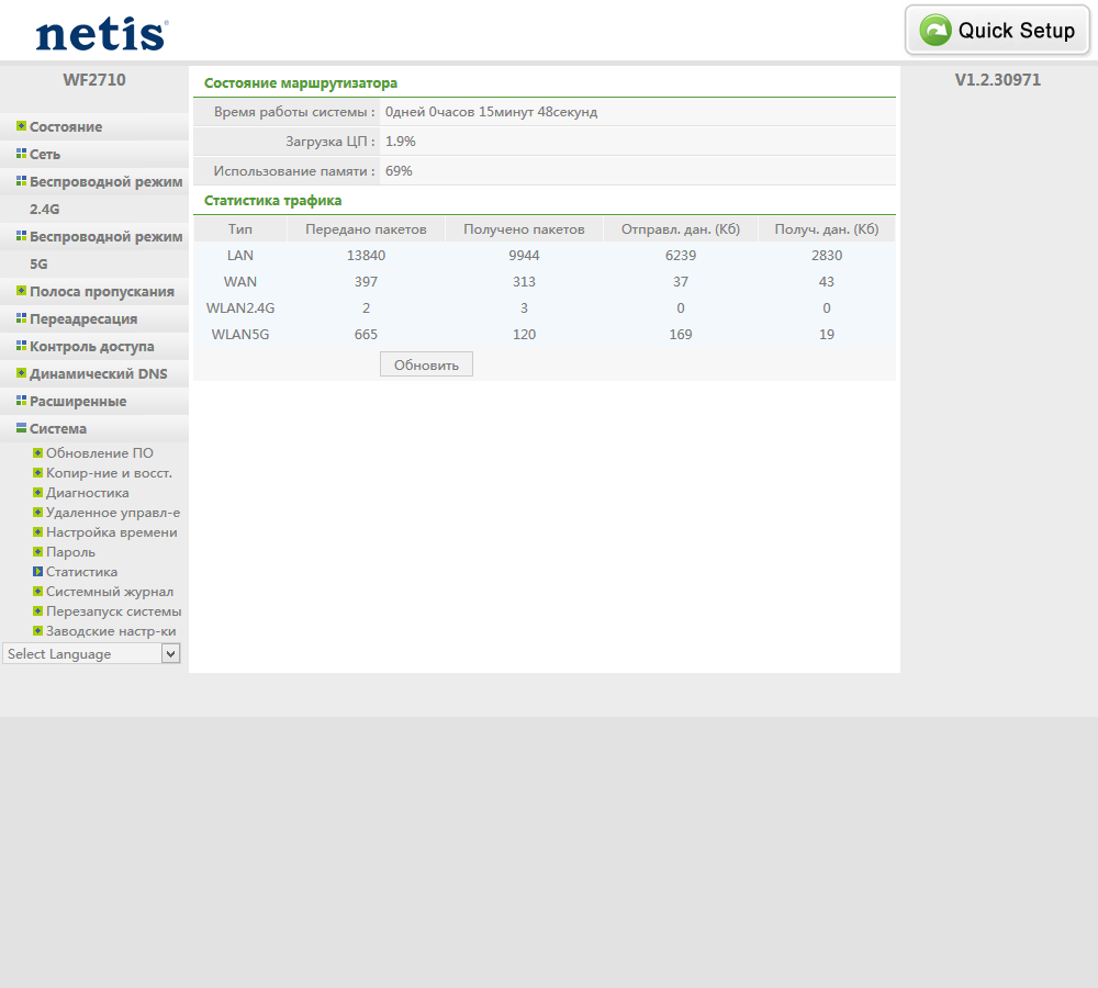 Тестирование роутера проводилось с прошивкой версии V1.2.30971.