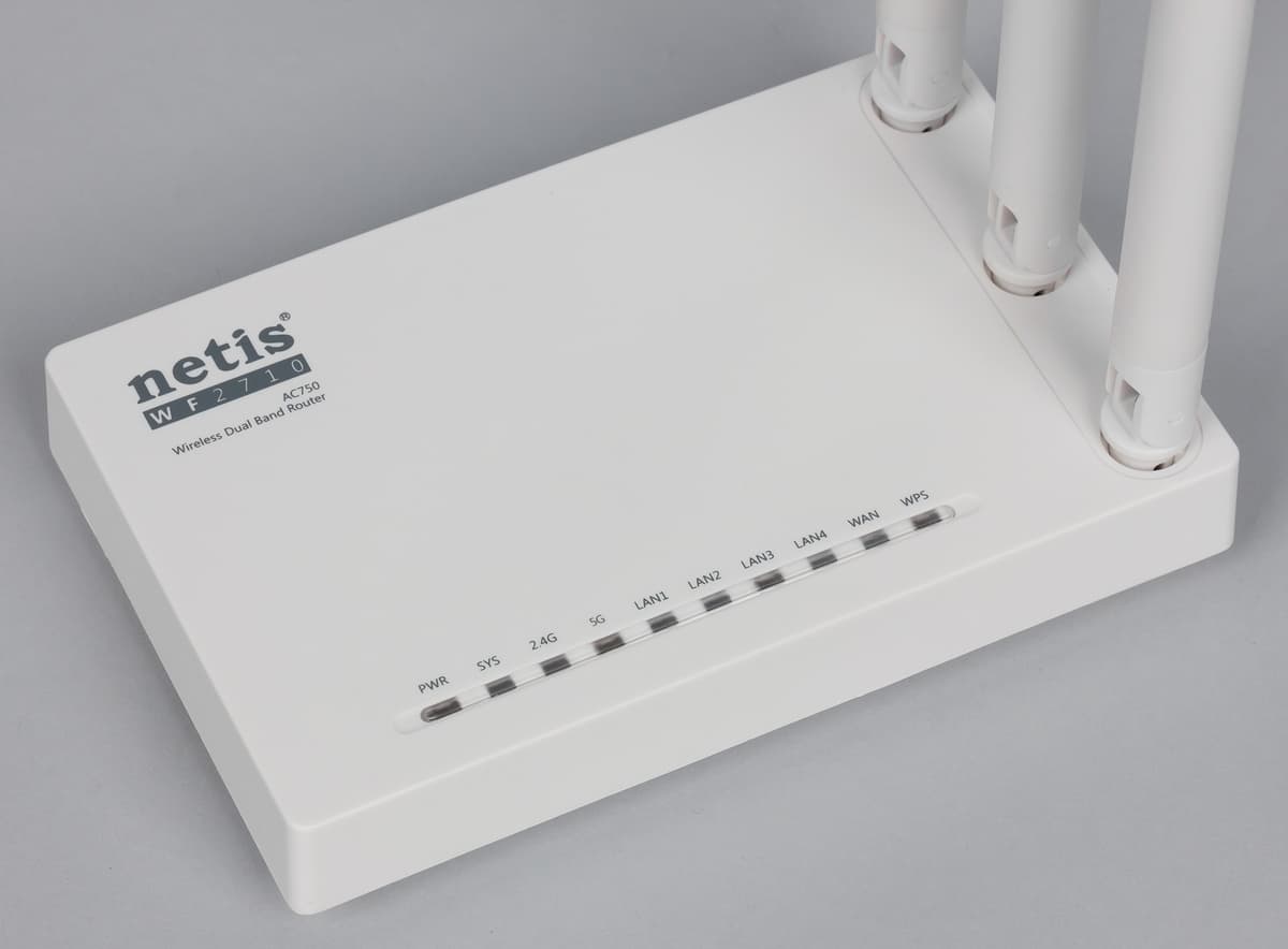 Роутер Netis WF2710 является представителем нового поколения бюджетных двухдиапазонных устройств. Работа на 5 ГГц в нем усилена поддержкой стандарта 802.11ac, что позволяет даже с одной антенной у смартфонов и планшетов получить скорость соединения 433 Мбит/с против 150 Мбит/с для аналогичных решений с 802.11n. Конечно, данная модель не способна полностью раскрыть потенциал быстрой беспроводной связи, поскольку имеет проводные порты только 100 Мбит/с. Однако, как показало тестирование, их она «отрабатывает» полностью — как на задачах маршрутизации, так и при обслуживании беспроводных клиентов. Устройство отличается простым и компактным корпусом, а также удобной прошивкой со стандартным для своего сегмента набором функций. Модель может быть интересна тем пользователям, которых с точки зрения производительности не устраивает работа с загруженным диапазоном 2,4 ГГц и которые имеют в своем арсенале совместимые с 5 ГГц устройства.