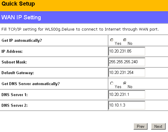 Это практически тоже самое, что и динамический IP, но в отличие от предыдущего пункта, где вся информация выдавалась провайдером, тут нам придется самим указывать IP адрес, маску подсети, адрес шлюза и адреса DNS-серверов.