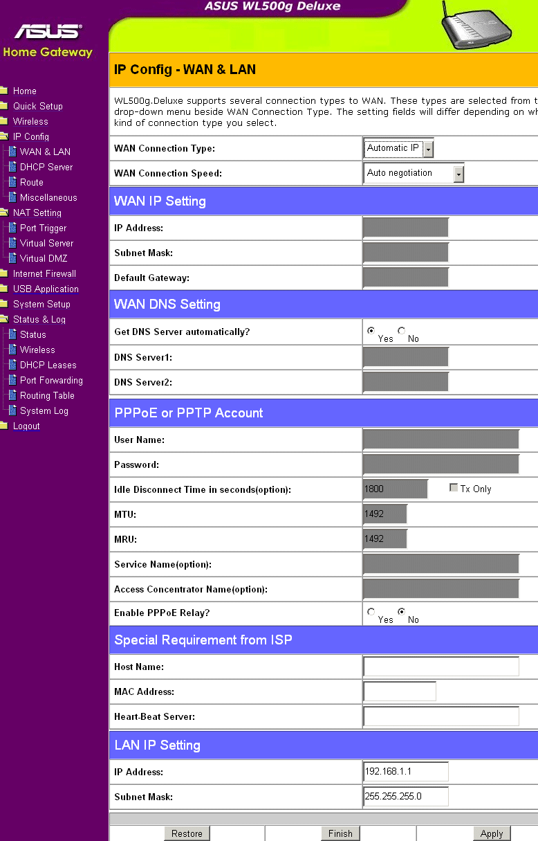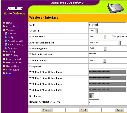 Например, воспользуемся беспроводным маршрутизатором ASUS WL-500G Deluxe (или любым другим).