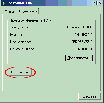 Дело в том, что обычно (хотя, как показала практика, некоторые производители эту возможность не включают по-умолчанию), в маршрутизаторах включен DHCP сервер. Этот сервис позволяет автоматически конфигурировать сетевые адаптеры клиентских компьютеров. Поэтому, если все настроено правильно, а устройство стоит в режиме настроек по-умолчанию, сетевые адаптеры проводных компьютеров получат IP-адрес и остальные настройки автоматически. Посмотреть на них можно, щелкнув на закладке "Поддержка" в свойствах сетевого адаптера: