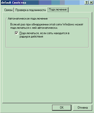А в закладке "подключение" — можно управлять автоматическим подключением компьютера к этой беспроводной сети, как только компьютер ее увидит.