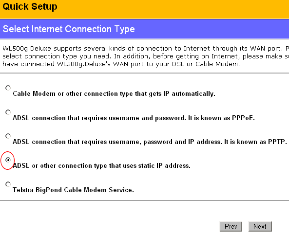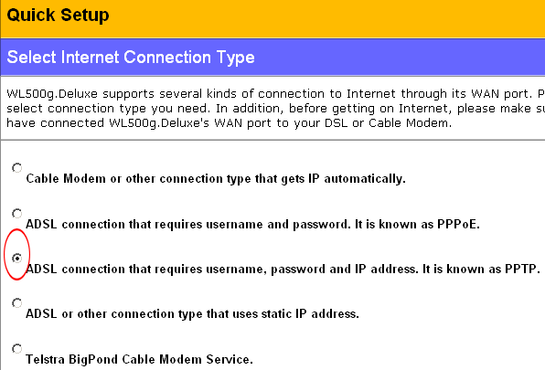 В данном меню представлено большинство распространенных соединений — статический и динамический IP адрес, PPTP и PPoE соединения. Последний пункт — специфичные настройки для одного из зарубежных провайдеров, мы его рассматривать не будем.