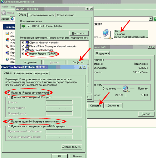 На этом этапе проводные клиенты уже могут работать с Интернет, так как у них установлено "автоматические получение IP адреса и DNS" — маршрутизатор выдаст им нужные параметры. В крайнем случае, достаточно будет нажать кнопку "исправить" …