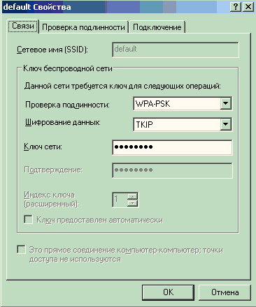 - Часть третья: настройка WEP/WPA шифрования в одноранговой беспроводной сети.