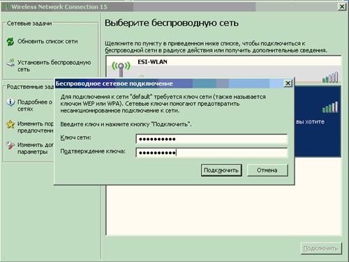 Так как в сети активировано WPA-шифрование, нам нужно ввести ключ (WPA pre-shared key), вводим.