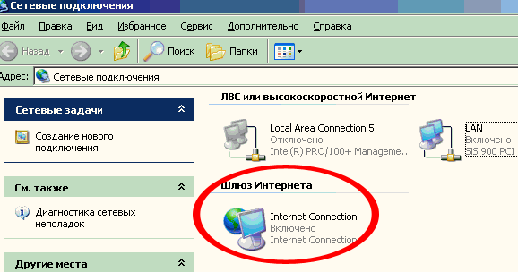 При наличии устройства с поддержкой UPnP в сетевых подключениях появляется дополнительный значок. Щелчок на нем вызывает следующее окошко: