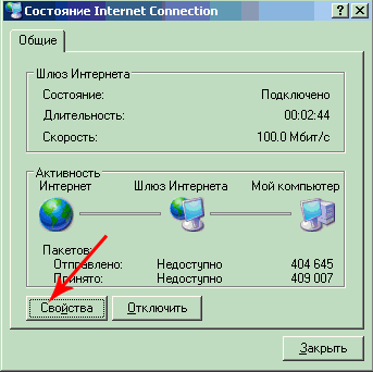 Тут мы можем узнать состояние нашего интернет-шлюза. Можно отключить шлюз (то есть доступ в Интернет) или посмотреть его свойства.