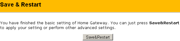 Настройка маршрутизатора завершена, устройство готово к работе после нажатия кнопки Save&Restart (после чего маршрутизатор перезагрузится и применит новые параметры).