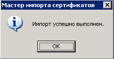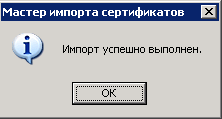 Выскакивающее окошко сообщает, что сертификат успешно установлен.