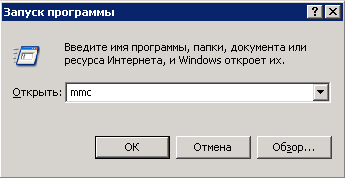 В окне запуска программы пишем "mmc" и жмем клавишу "OK".
