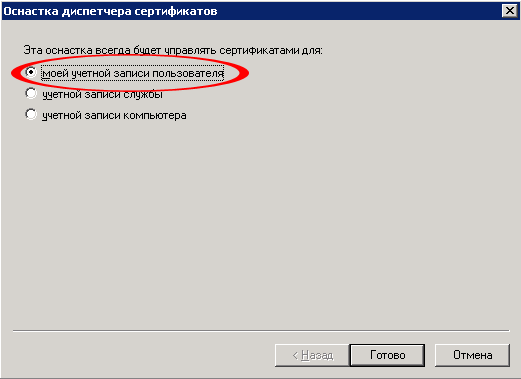 Пункт "моей учетной записи пользователя" позволит добавить оснастку управления пользовательскими сертификатами. Именно ими мы и управляли в предыдущей статье с помощью интерфейса IE.
