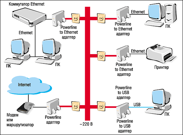 Рис. 2. Структура домашней сети PowerLine. Подключаемся к intranet/Internet