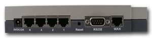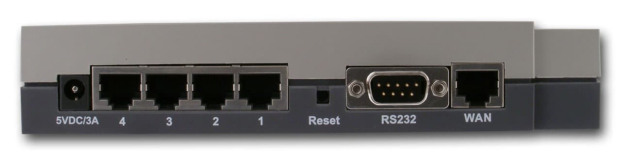 - Последовательный порт RS232 для подключения внешнего аналогового V.90 модема или для консольного управления устройством через прилагаемый в комплекте нуль-модемный кабель.