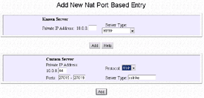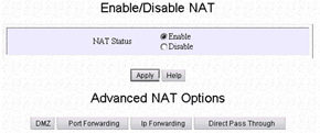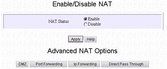 Раздел NAT позволяет включить или отключить трансляцию адресов, а так же задать IP адрес DMZ зоны или перенаправлять внешние порты внутрь локальной сети (для создания так называемых «виртуальных серверов»). Перенаправления трафика во-внутрь локальной сети можно так же осуществлять по IP адресам, если провайдер выделил вам несколько IP адресов, то их можно перенаправлять во внутреннюю сеть (меняя их при этом на адреса компьютеров из локальной сети).