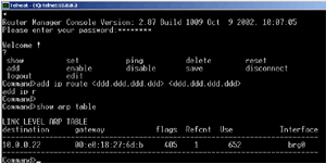 Настройка роутера возможна как через WEB, так и через Telnet/Консольный интерфейсы. Последний дает возможность конфигурировать роутер, подключенный через COM-порт к компьютеру (без участия TCP/IP).