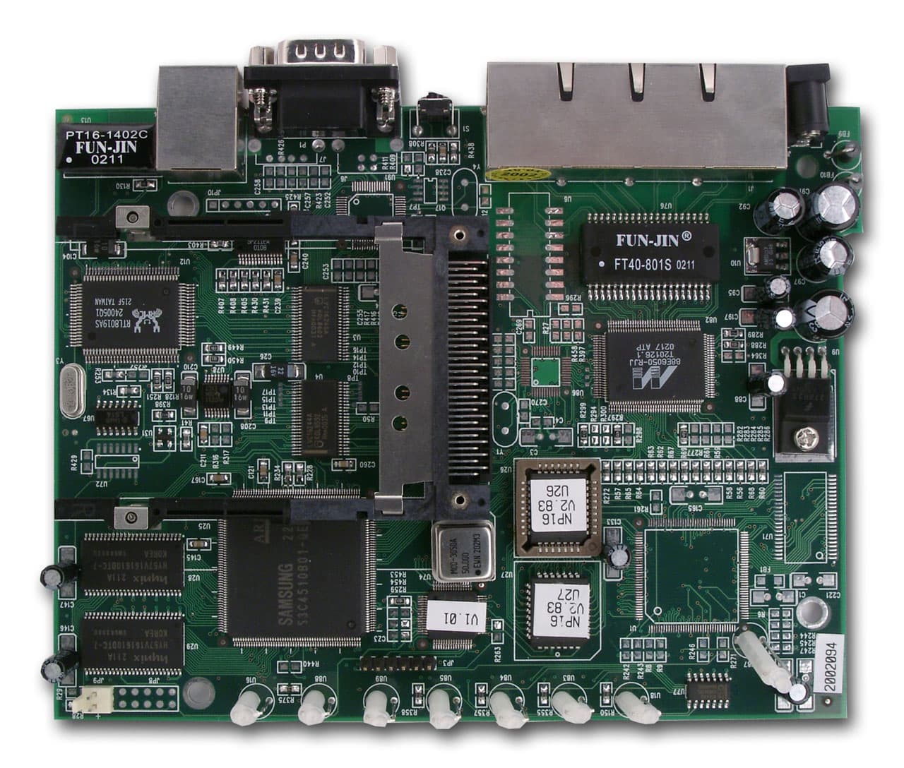Элементы на печатной плате довольно плотно упакованы. В качестве основного вычислительного устройства используется уже знакомый нам RISC-процессор Samsung S3C4510. Он работает на частоте 50 МГц.
