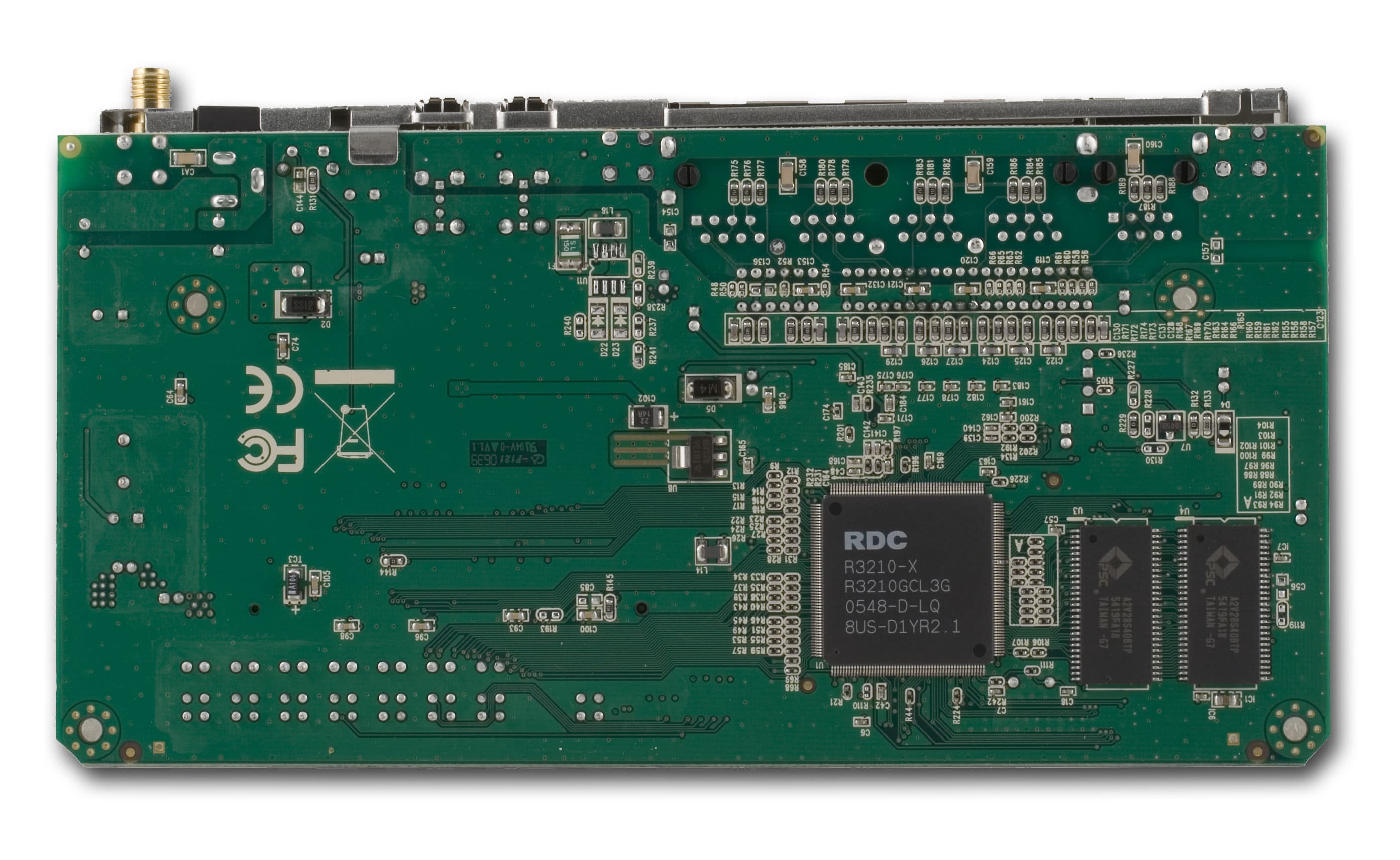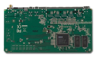 Процессор устройства расположен на обратной стороне основной платы — RDC R3210 [PDF](32-битный RISC-процессор с тактовой частотой 133 МГц, ОЗУ до 128 МБайт).