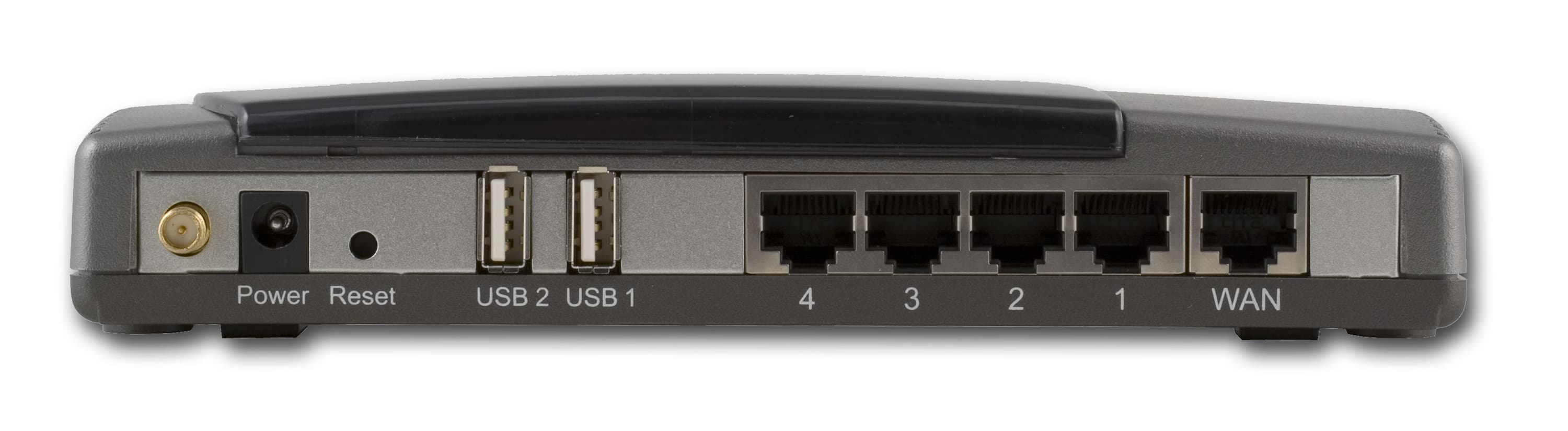 Функциональные возможности: Fast Ethernet-маршрутизатор с возможностью шейпинга трафика, 4-хпортовый Ethernet-коммутатор 10/100 с поддержкой автоопределния полярности на портах (Auto MDI/MDI-X), точка доступа стандарта IEEE 802.11g с поддержкой режима повышения производительности (Turbo mode) и режима беспроводного моста. Также возможно подключение к устройству внешних USB-Flash/HDD накопителей и USB-принтеров.