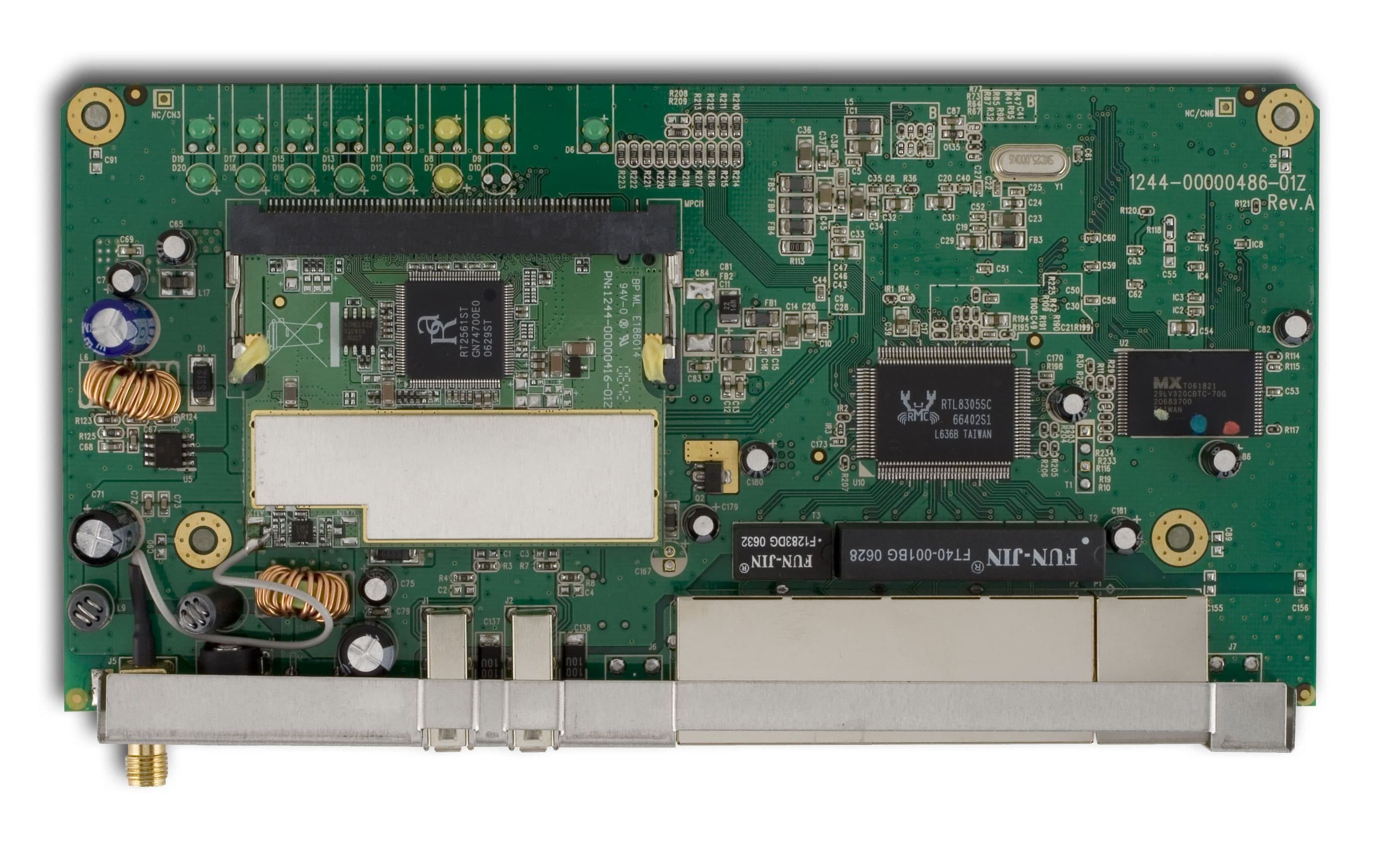 Коммутатор устройства выполнен на базе микросхемы Realtek RTL8305SC (5-типортовый коммутатор Fast Ethernet с поддержкой функций QoS на каждом порту).
