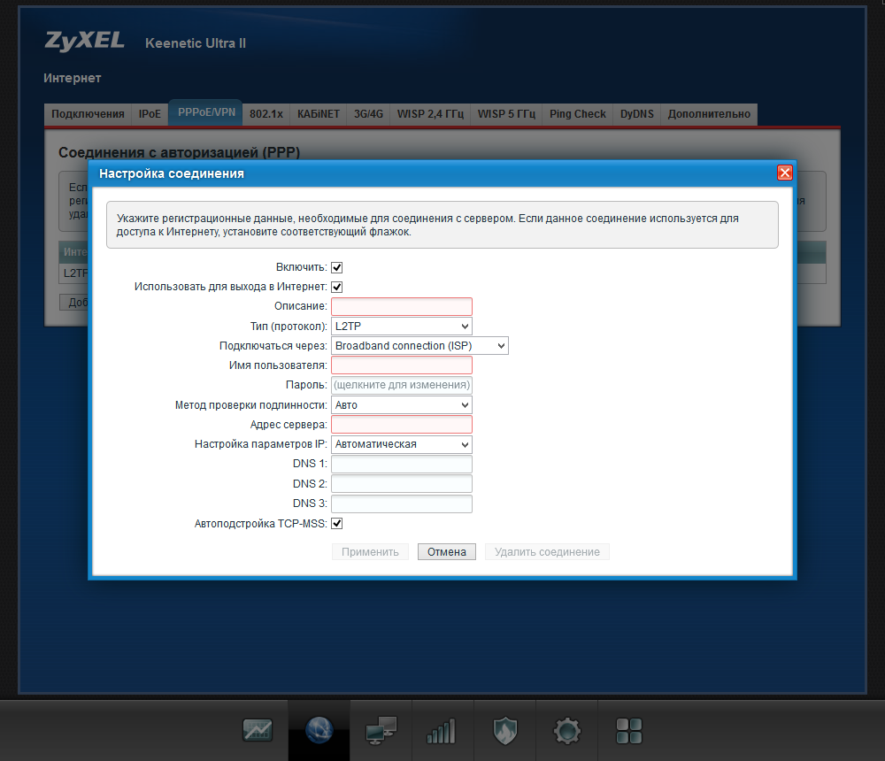 PPTP и L2TP сегодня, к счастью, встречаются все реже. Для них кроме имени и пароля нужно указать и адрес сервера доступа провайдера. Эти режимы создают бо́льшую нагрузку на процессоры роутеров, а также могут иметь определенные проблемы совместимости.