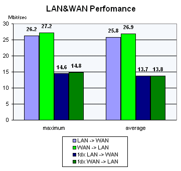 На приведенном графике показаны реальные результаты тестирования одного из маршрутизаторов. Слева приведены максимальные результаты, справа среднее значение по всем 20 замерам.