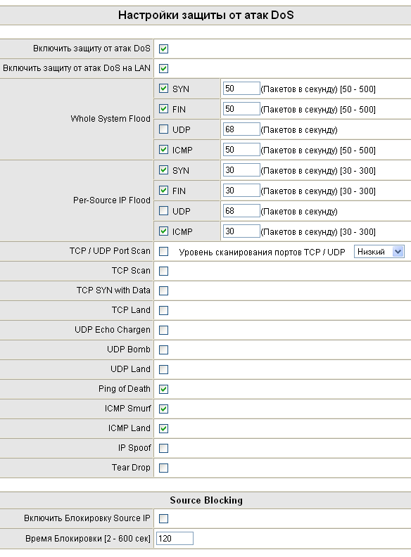 Во время тестирования были включены оба вида удаленного управления (WEB и Telnet), а также отключены настройки защиты от атак.