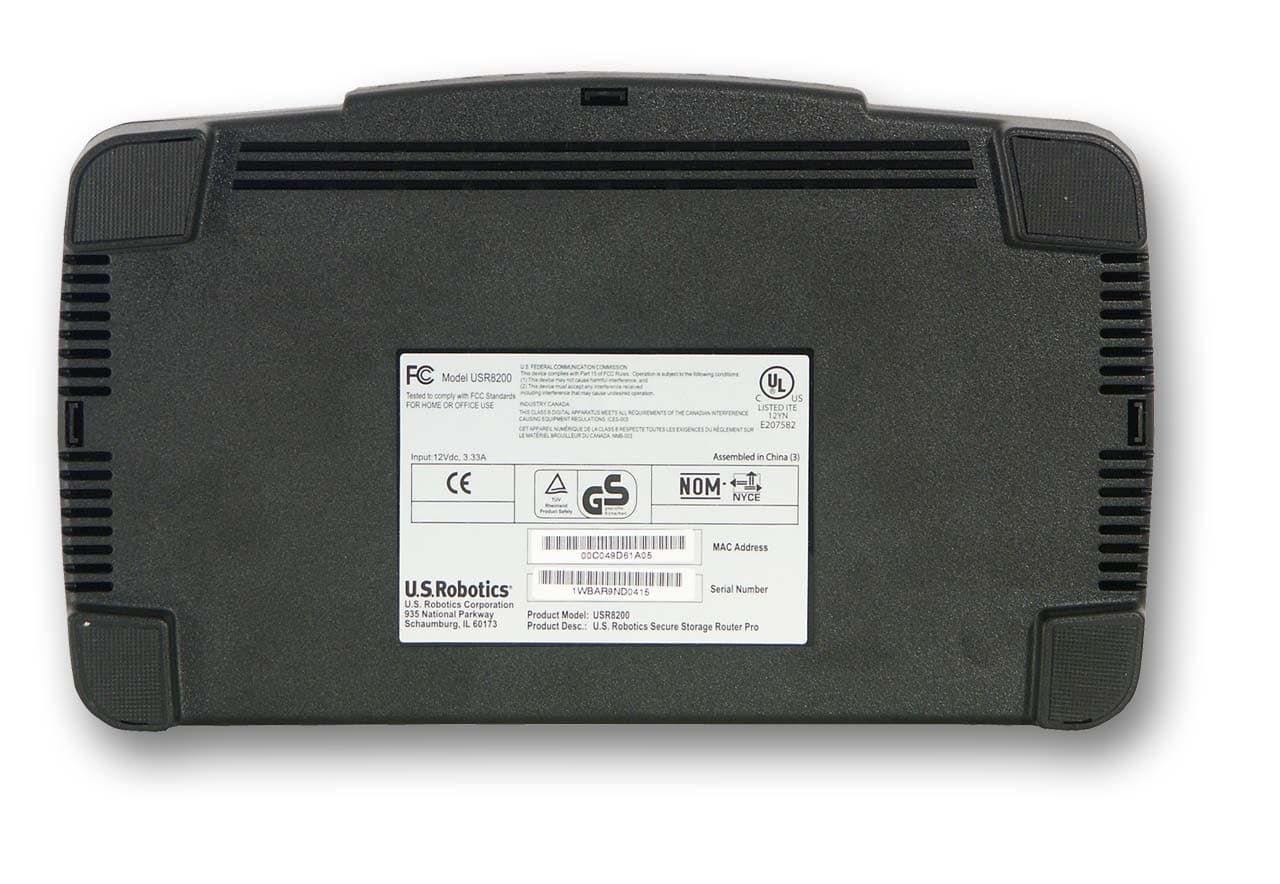 Все интерфейсы находятся в задней части корпуса USR8200. Кроме традиционных 4 LAN, 1 WAN портов, кнопки Reset и коннектора питания, хорошо видны два порта USB 2.0 и один — FireWire интерфейсов. Они предназначены для подключения внешних систем хранения данных (NAS, network attached storage) с одноименными интерфейсами, например, U.S.Robotics 250GB USB 2.0 + FireWire Storage Drive. Также ничто не мешает подключить к USB порту USB-Flash диск. Конечно, по сравнению с NAS-системами объемы не сопоставимы, тем не менее, Flash-диски объемом несколько гигабайт уже существуют.