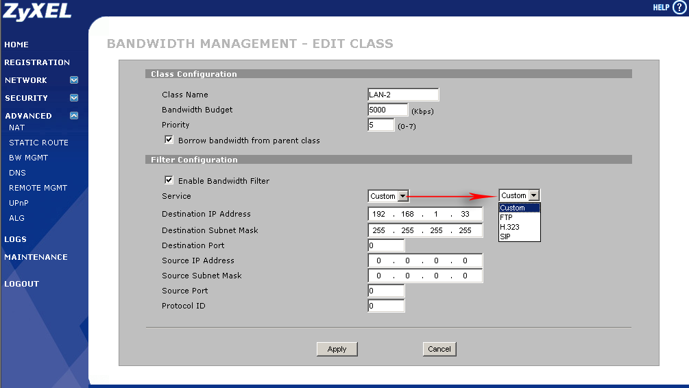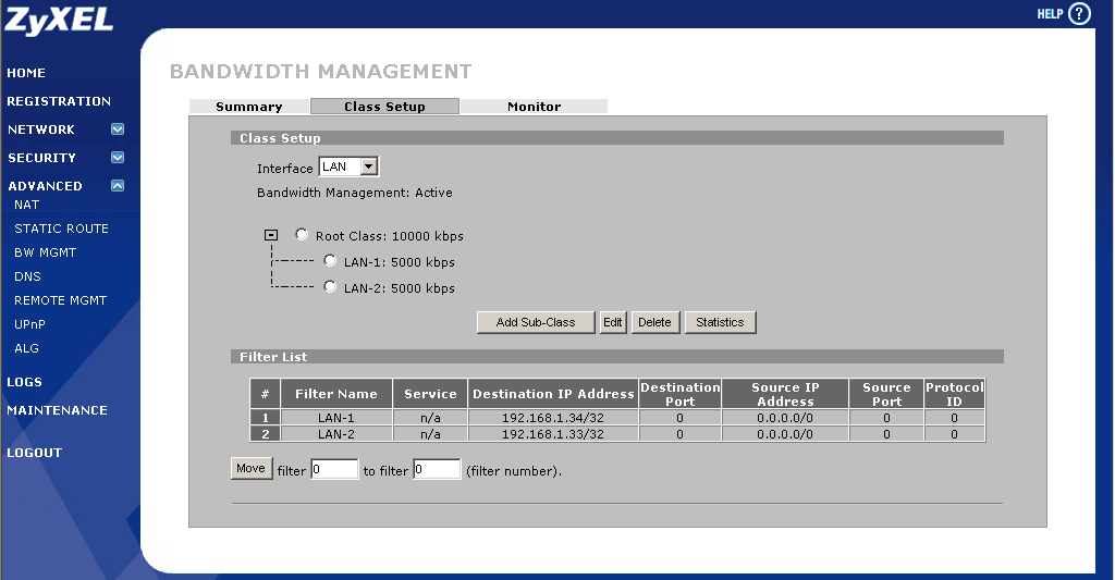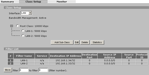 Enable Bandwidth Filter — включение/выключение правил данного класса.