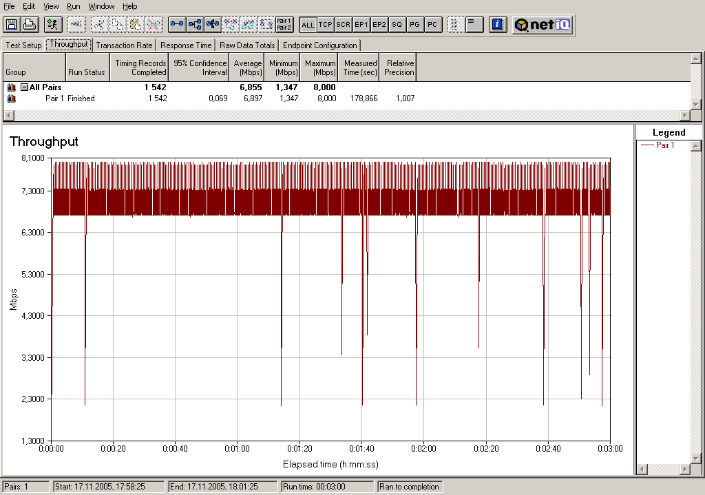 Средняя скорость: 6.855 Мбит/с. Видно, что средняя скорость не 10 Мбит/с, и даже не 10000 кбит/с (ведь 1 Мбит/с = 1024 кбит/с), к тому же неизвестно чему равен 1 кбит/с в устройстве (1000 или 1024 бит).