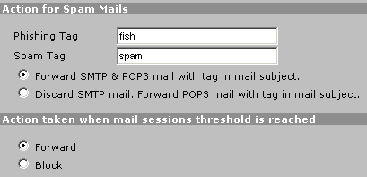 Спам-фильтр устройства также позволяет обнаруживать почту, являющуюся так называемым фишингом (производное от fish) — разновидность мошенничества, при котором мошенники используют различные уловки для того, чтобы узнать пароли, номера банковских счетов и т.д. Такие письма помечаются тэгом, указанным в поле "Phishing Tag".