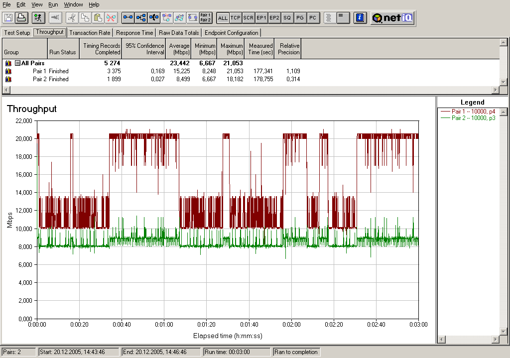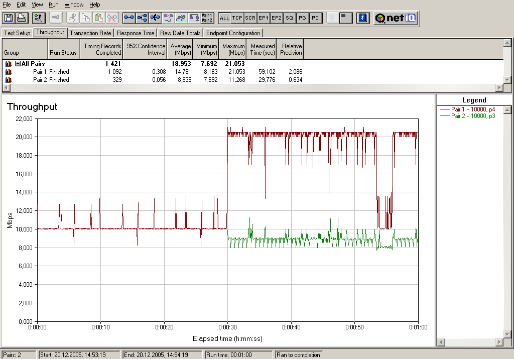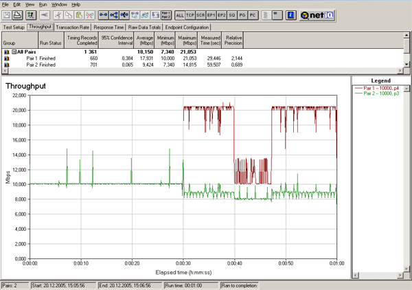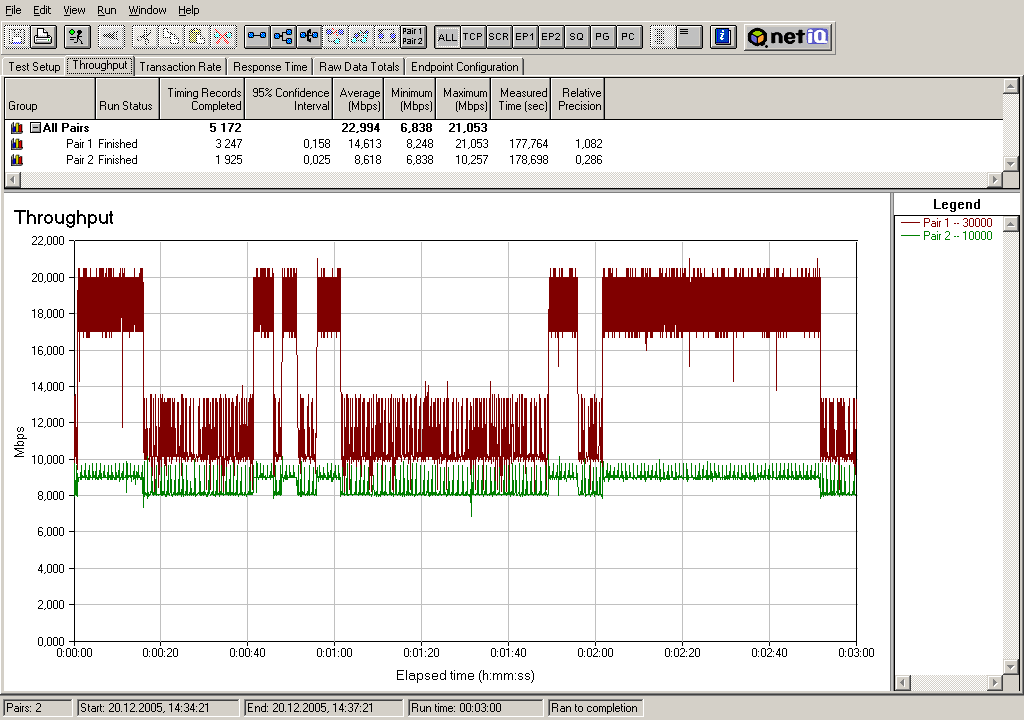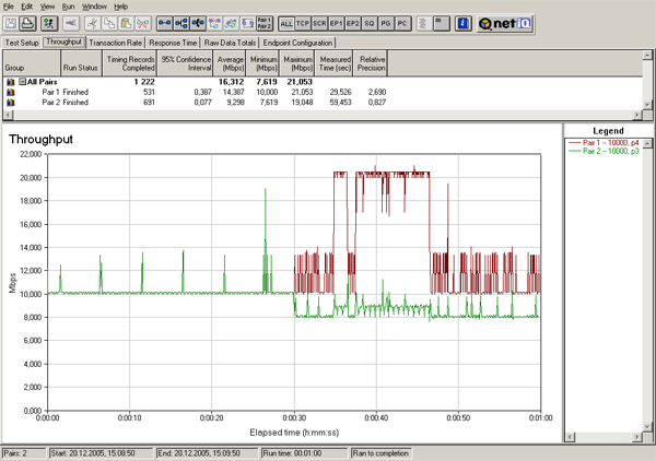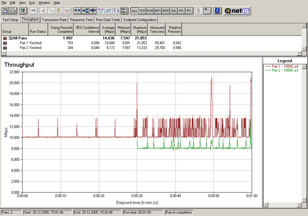 Все параметры шейпинга остаются такими же, как и в предыдущем тесте, но поток с меньшим приоритетом запускается с 30-тисекундной задержкой.