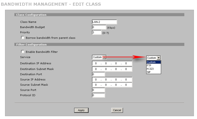 Enable Bandwidth Filter — включение/выключение правил данного класса.