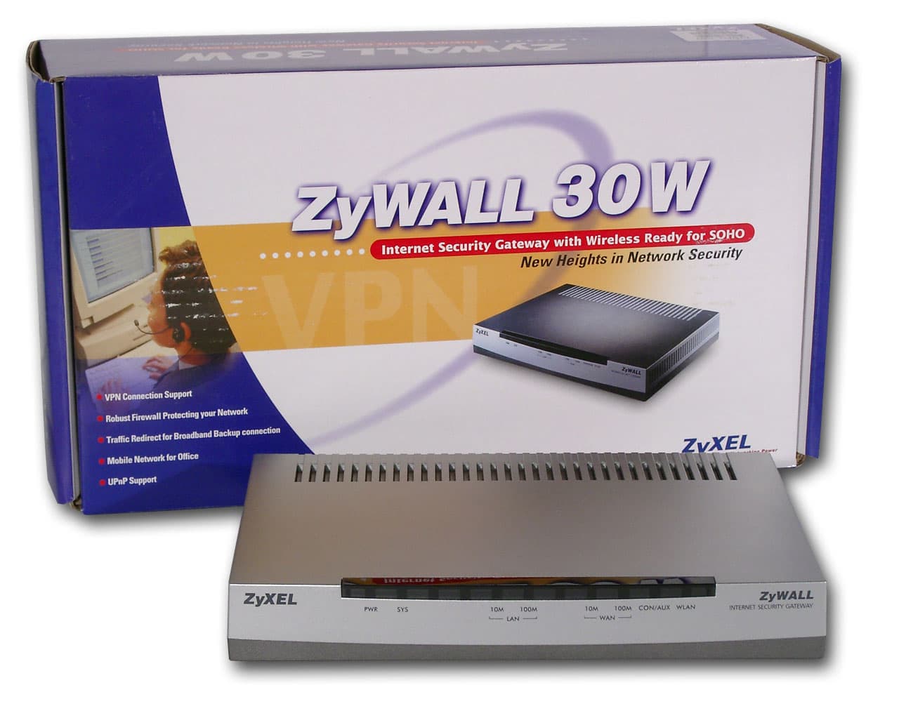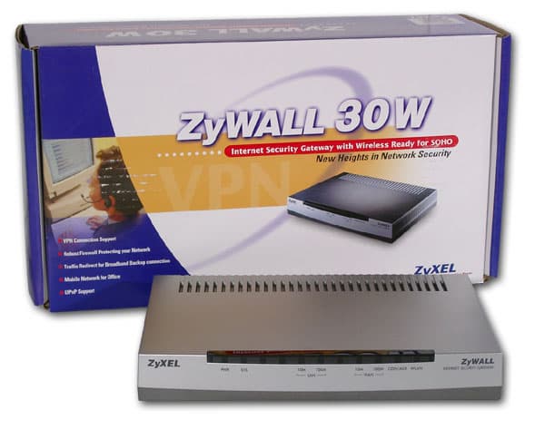ZyWALL 30W позиционируется как аппаратный файрвол/маршрутизатор с возможностями VPN-сервера, а именно терминирования IPSec-туннелей. Заявленная производительность устройства в режиме VPN-сервера 15 Мбит при использовании DES-шифрования.