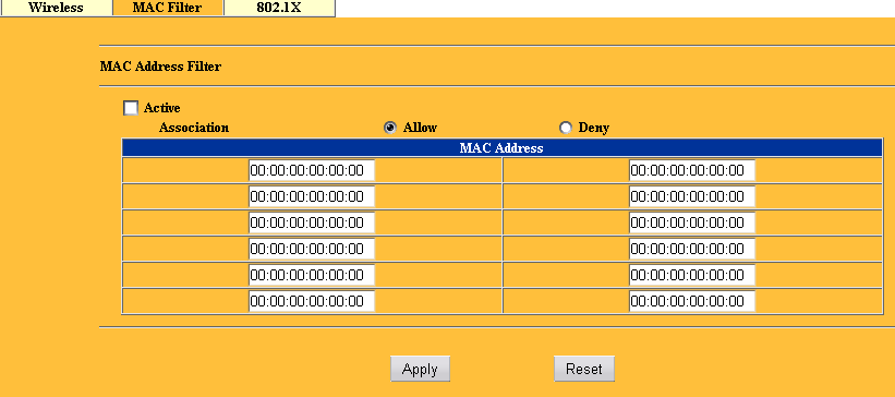 … фильтрации MAC адресов беспроводных клиентов (до 12 записей).