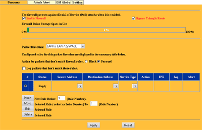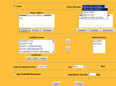 Каждое правило определяется для пакетов, идущих в определенном направлении сквозь ZyWALL: