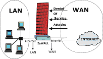 Кроме того, в устройство встроены механизмы, позволяющие автоматически определять и пресекать новый вид атак, приводящих к так называемому отказу в обслуживании, таких как Ping of Death, SYN Flood, LAND Attack, IP Spoofing и других подобных (так сказано на сайте компании ZyXEL).