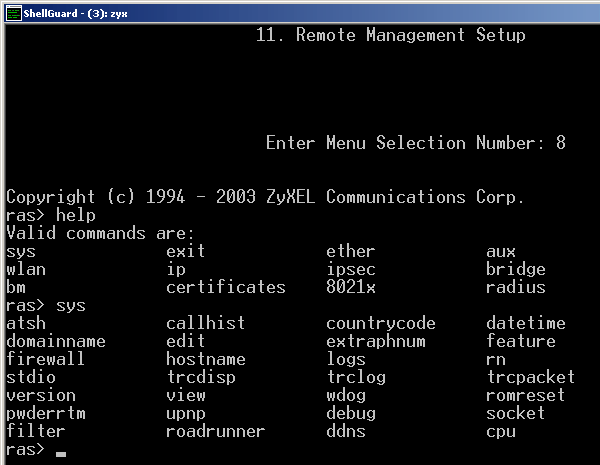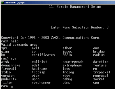 Причем оба режима отлично документированы (на компакт диске лежат два файла в формате PDF по каждому из этих режимов). Отмечу, что консольные интерфейсы имеют гораздо больше функций, чем WEB-интерфейс. К примеру, в консольном режиме можно посмотреть статистику процессора, пропинговать удаленный хост, посмотреть статистику звонков модема и другие. Я не нашел этих и некоторых других функций в WEB интерфейсе, они доступны только через консоль. Правда, нельзя сказать, что они будут использоваться большим количеством людей. Но некоторым эти функции покажутся полезными.