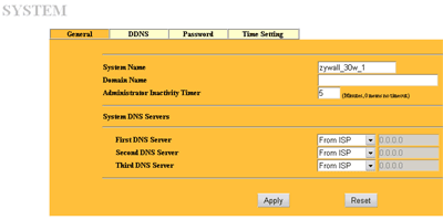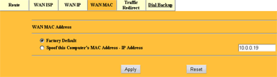 Сменить MAC адрес WAN интерфейса можно на следующей закладке. Правда в WEB интерфейсе нельзя выставить произвольный MAC, возможно лишь склонировать MAC адрес машины, с которой и происходит в данный момент управление ZyWALL-ом.