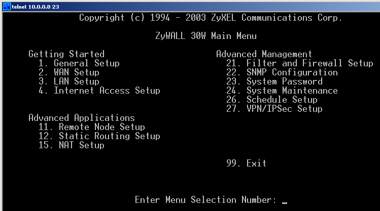 Конфигурирование ZyWALL 30W