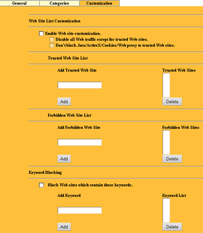 Ситуацию немного сглаживает закладке Customization, где можно добавить собственные фильтры, как по URL, так и по содержимому WEB-сайтов, но все сайты все равно описать невозможно.