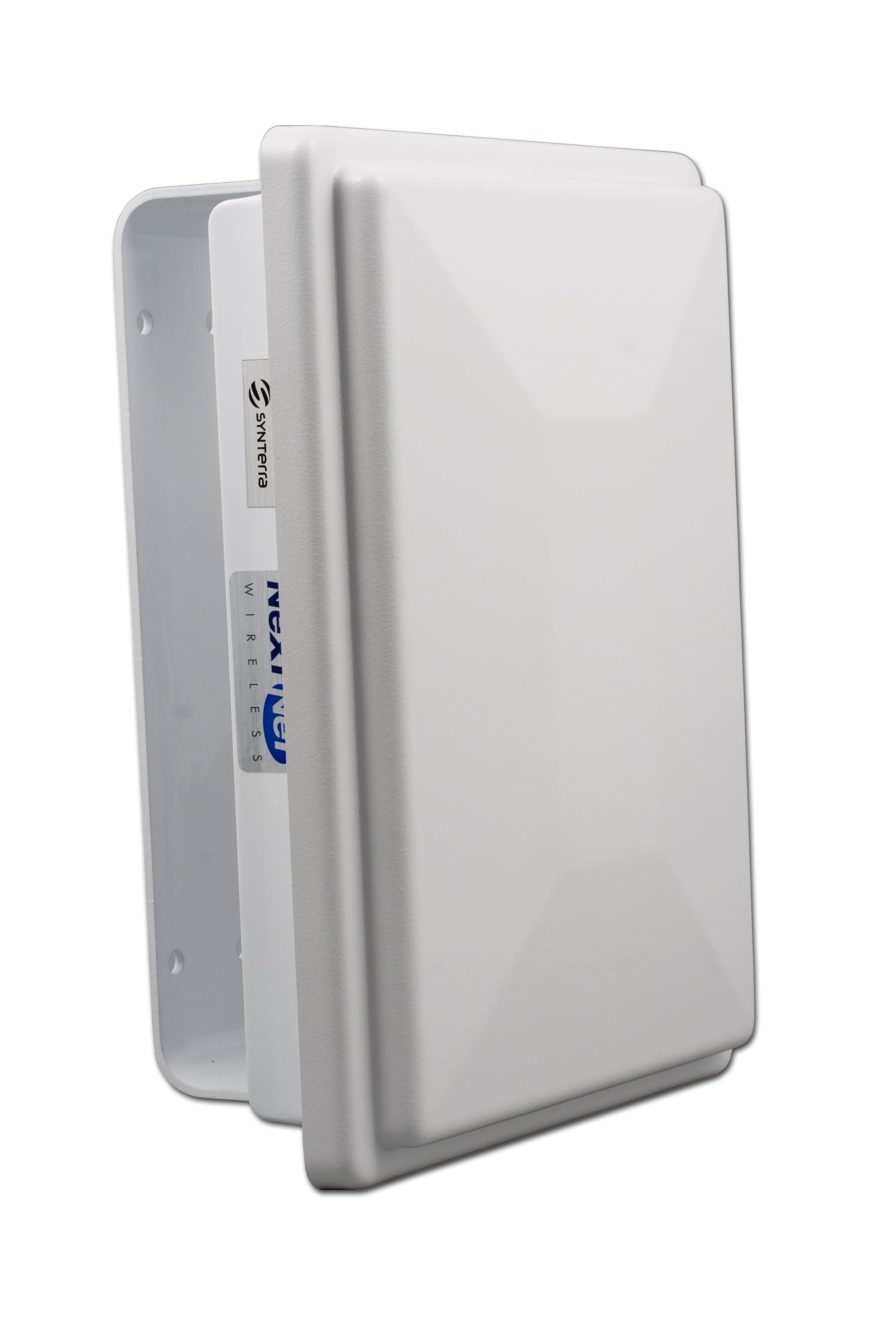 Сам беспроводной модем произведен компанией Motorola под маркой NextNet, и он может обслуживать до 15-ти Ethernet-клиентов (через коммутатор). В случае если клиентов больше 15-ти — потребуется дополнительная установка маршрутизатора. Беспроводной модем может предоставляться компанией «Cинтерра» как в Indoor исполнении (в этом случае модем имеет габариты 235x162x30 мм и вес 550 г), так и в Outdoor исполнении — в данном обзоре мы рассматриваем именно Outdoor-исполнение.