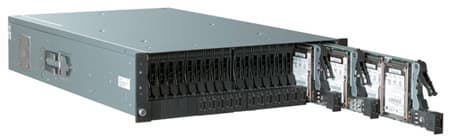 - двухканальный Ultra320 SCSI HostRAID-контроллер (Adaptec 7902W) с поддержкой RAID 0, 1, 10; первый канал подключен к встроенным жестким дискам, второй (только для лезвий 3/4 и 9/10) может быть использован с внешними накопителями (выведен на заднюю панель шасси);