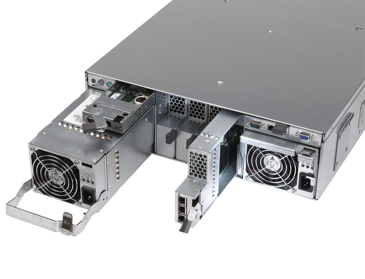 - два блока питания (по 1200 Вт), в каждом установлено по 3 вентилятора, возможна установка дополнительно еще двух блоков питания;