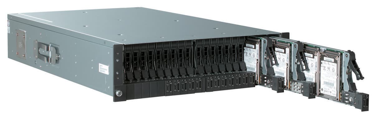В максимальной конфигурации можно получить двадцать процессоров Xeon, 120/80 ГБ оперативной памяти и 2,8/1,4 ТБ дисковой памяти в 10/20 дисках в 7U корпусе. Кроме того там будут установлены сетевые коммутаторы и KVM-переключатель. Единственным недостатком, пожалуй, является невозможность установки дополнительных плат расширения в четырехпроцессорные модули. С другой стороны для вычислительных кластеров чаще используют двухголовые узлы.