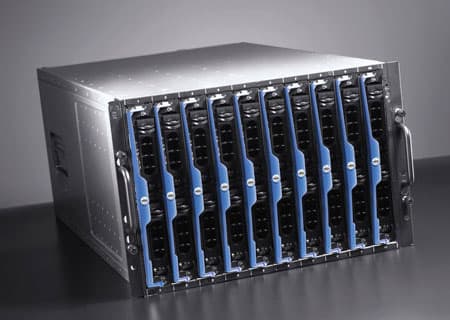Dell PowerEdge 1855: процессоры Intel Xeon DP, до 8 ГБ памяти на лезвие, два гигабитных сетевых контроллера, U320 SCSI-контроллер, до двух SCSI-дисков, 10 лезвий в корпусе 7U, опционально Fibre Channel.