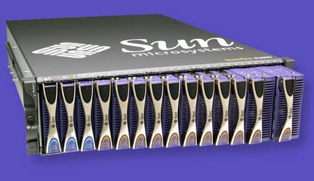 Sun Fire B100s/B100x/B200x Blade Server: процессоры UltraSPARC Iii/Mobile Athlon XP/Xeon DP LV, 1/2/4 ГБ оперативной памяти, до 16 модулей в 3U-корпусе, 2/3/4 гигабитных сетевых адаптера, один 2,5" IDE-жесткий диск.