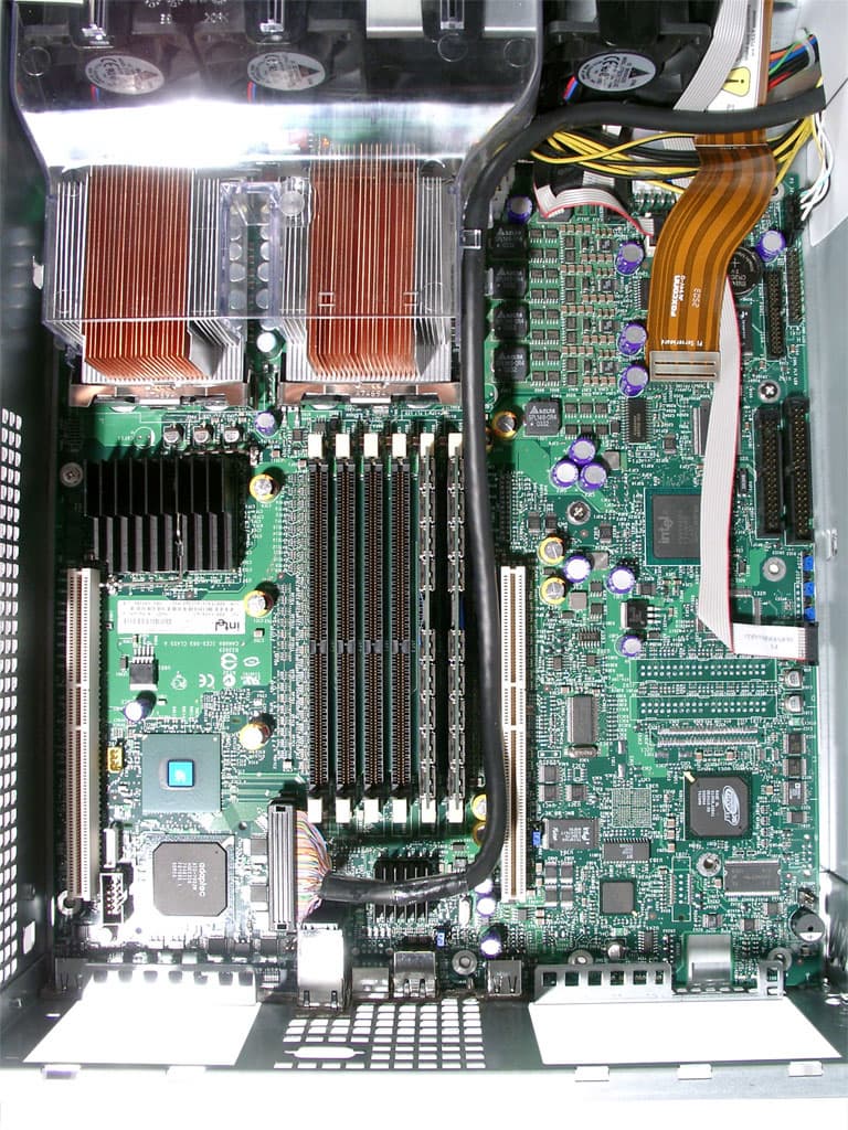 - Dual Intel XEON 2.4 ГГц, 512Кб кэша, с частотой шины 533 Мгц и технологией HT;