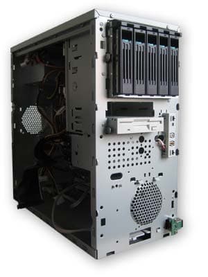 То есть он удовлетворяет требованиям организации, где всего несколько серверов. Для них это будет сбалансированный сервер. В более крупных организациях, где парк серверов больше, не стоечное исполнение, отсутствие взаимозаменяемости компонентов с остальными серверами, как-то память (во второй конфигурации память регистровая), блоки питания, лишь увеличат стоимость сопровождения. Так же неплохо Raptor будет смотреться в рабочей станции, тем более что Serial ATA контроллеры есть во всех новых компьютерах.