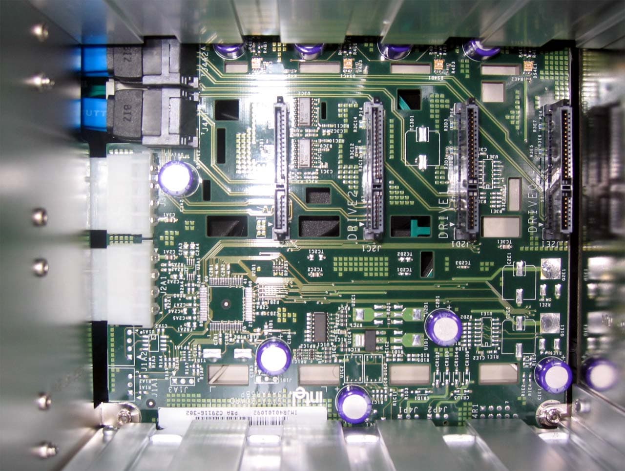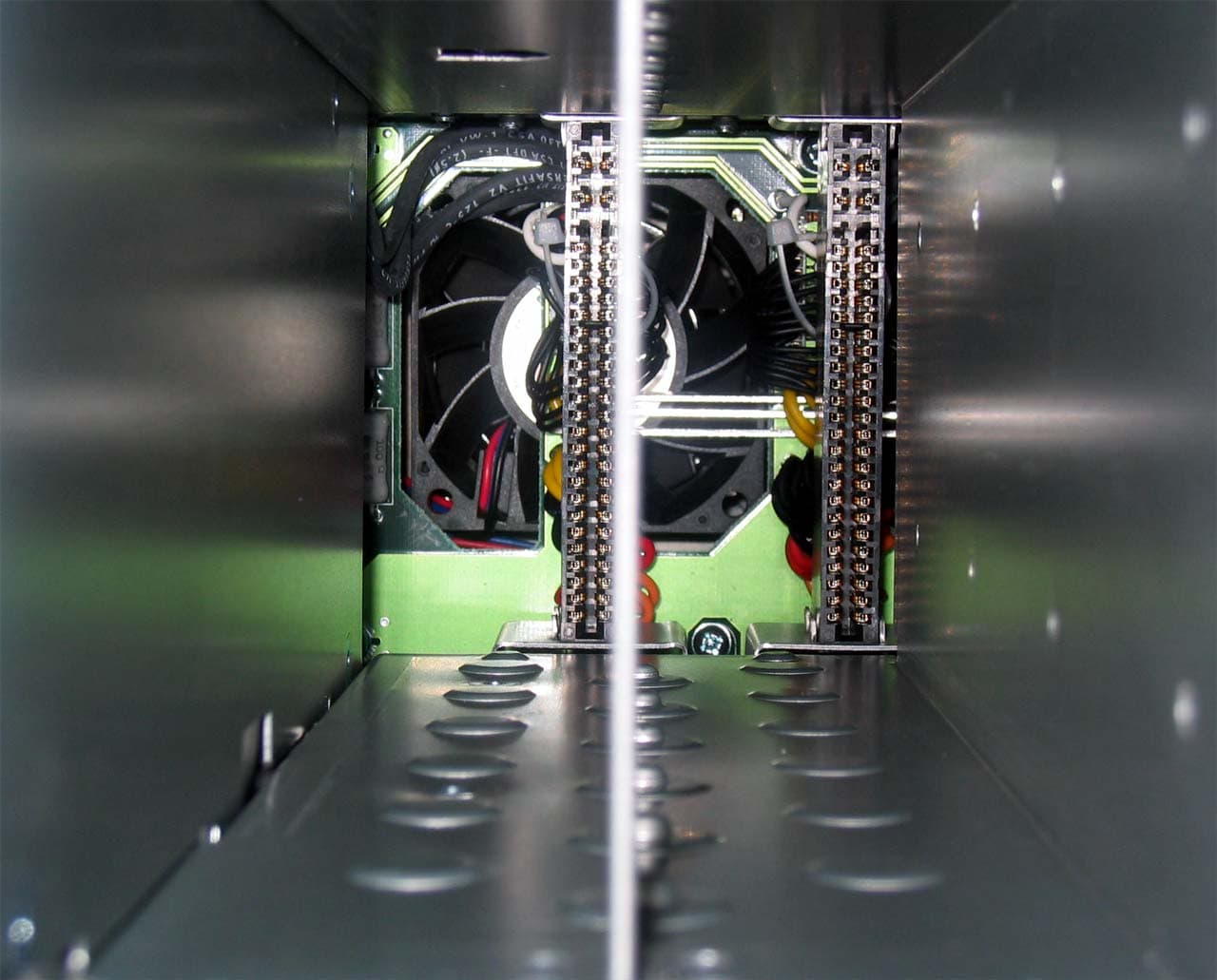 Всего в корпусе 5 hot-swap вентиляторов: два сзади и три за корзинами с дисками.